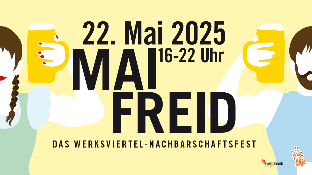 Der Frühling ist endlich da und wir laden Euch und Eure Freunde ein, gemeinsam auf bayerische Art zu feiern! Am 22. Mai findet das Nachbarschaftsfest „Mai Freid“ statt, das für Gemeinschaft, Geselligkeit und jede Menge Spaß steht. Besucht uns und lernt Eure Nachbarn kennen, während ihr die besondere Atmosphäre unseres Viertels genießt.
